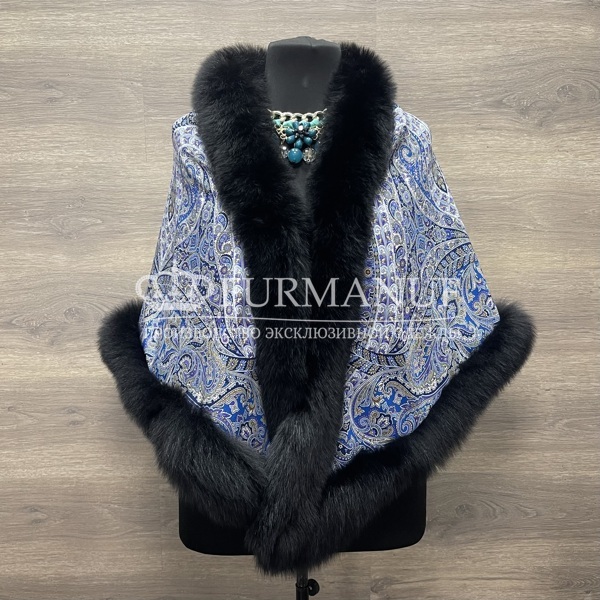 Платок шелковый «Великолепный Век» с мехом песца 1867-11